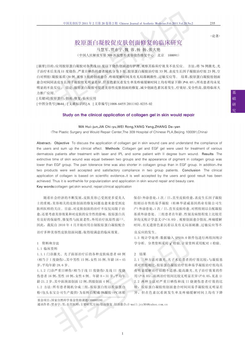 Clinical study of collagen gel in promoting skin wound repair
