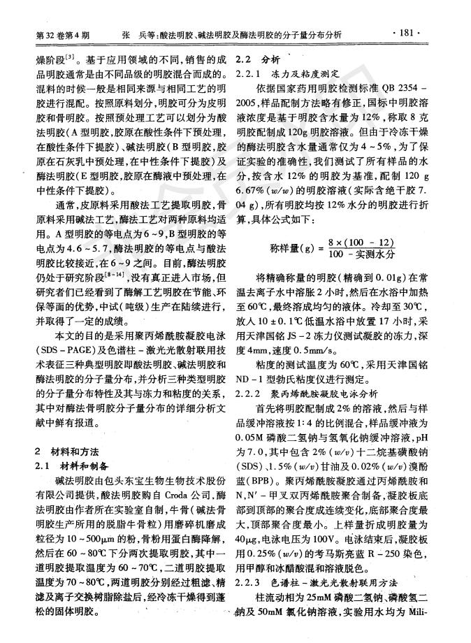 Analysis and Distribution of Molecular Weight of Acid Method Gelatin, Alkaline Method Gelatin and En