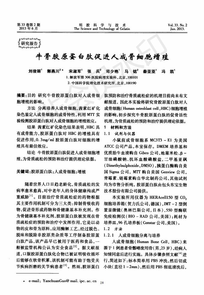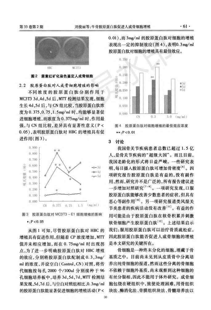 Bovine collagen peptide promotes the growth of human osteoblasts