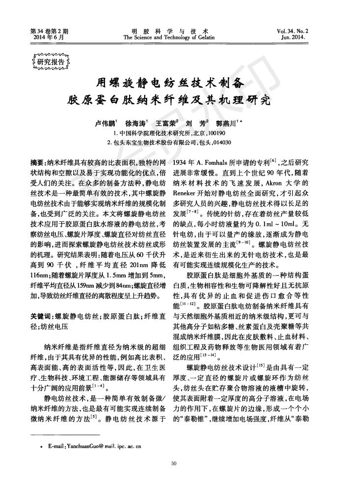 Study on the preparation and mechanism of collagen peptide nanofibers by spiral electrospinning tech